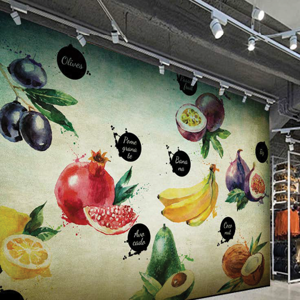 - يتميز ورق الجدران برسومات فواكه ملونة وجذابة مما يضفي لمسة حيوية ونشاط على البيئة المحيطة.
